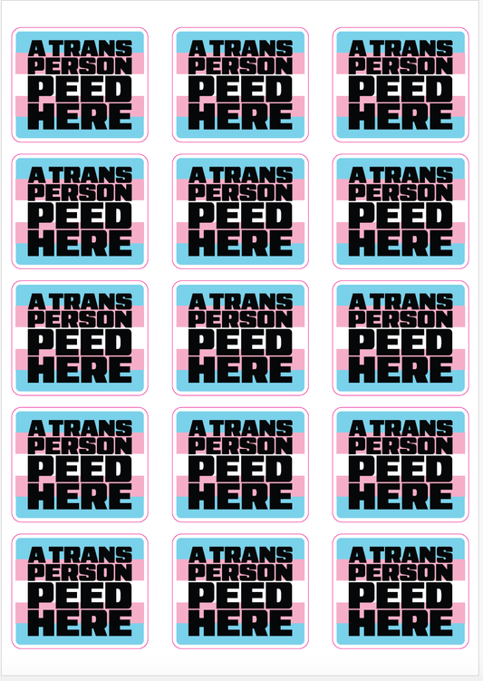 A Trans Person Peed Here - A4 Sticker Sheet - FREE for Trans Fam